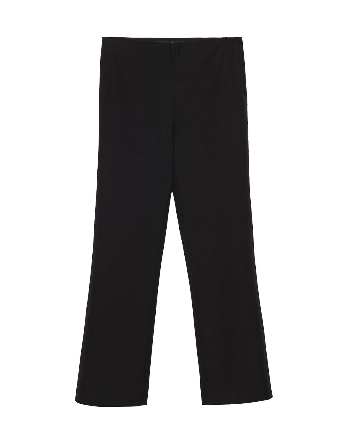 Die Stoffhose aus einem Baumwoll-Mix verfügt über ein verkürztes, ausgestelltes Bein. Der schlichte Look erhält durch die elastische Strick-Ware einen eleganten Look. Das Gesäß ist mit klassischen Paspeltaschen versehen.