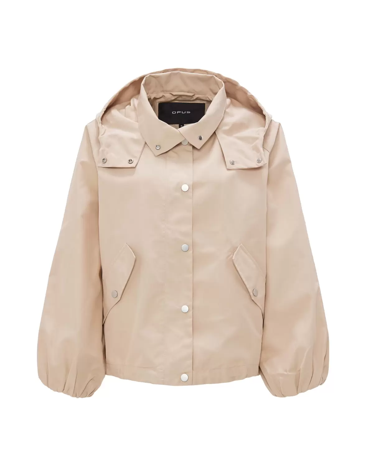 Der kurze Parka überzeugt mit seiner wasserabweisenden Oberfläche und funktionalen Details, während der geraffte Ballonsaum für einen femininen Look sorgt.