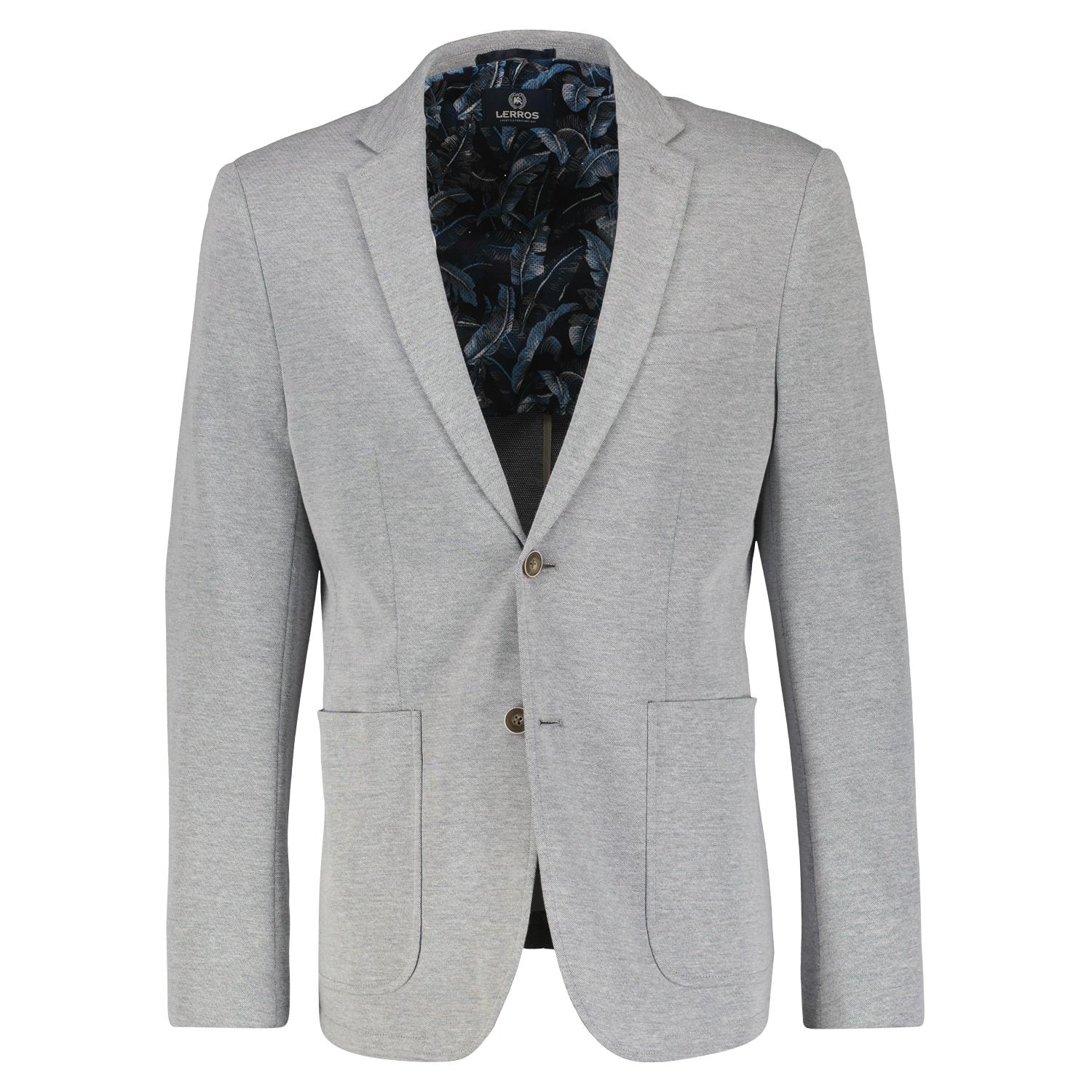 Lässiger LERROS Jersesblazer in leicht melierter Optik. Ein LERROS Blazer für jeden Anlass mit schmalem Reversekragen lässt sich nur git zu Jeans und Hemd kombinieren, sondern macht auch eine gute Figur zum T-Shirt. Die aufgesetzten Taschen und die leicht melierte Optik sorgen für modische Akzente.