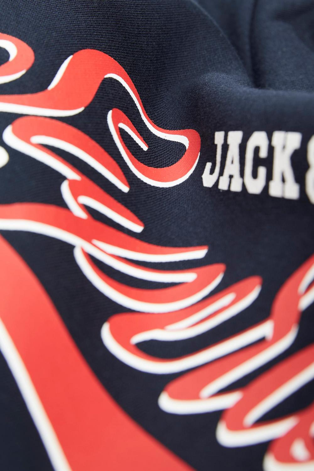 Keine Garderobe ist komplett ohne einige bewährte Basics wie Sweatpants.Ungebürsteter Sweatstoff hat eine glatte Oberfläche und Schlaufen an der Innenseite für ein angenehmes Tragegefühl.Entdecke die aufregende Welt von Jack and Jones Junior, in der Mode durch jugendliche Energie und lebhaften Charme zum Leben erweckt wird. Unsere Kollektionen bieten eine Mischung aus neuen, trendigen Designs, die Jungen im Alter von 3-16 Jahren ansprechen. Tauche in hochwertige und bequeme Styles ein, die speziell für junge Fashion-Liebhaber entwickelt wurden. Bei Jack and Jones Junior interpretieren wir Mode für Jungs im Alter von 3 bis 16 neu, indem wir coole Passformen und moderne Styles kombinieren und dabei immer wieder Elemente aus der Erwachsenenmode einfließen lassen.. - Produkttyp : Kapuzenpullover - Neck : Kapuze - Ärmel : Langarm - Ärmel : Eingesetzte Ärmel - Futter : Futter Kapuze aus gleichem Material - Print : Gummidruck für Weichheit - Körperform : Mini - Passform : Normal geschnitten