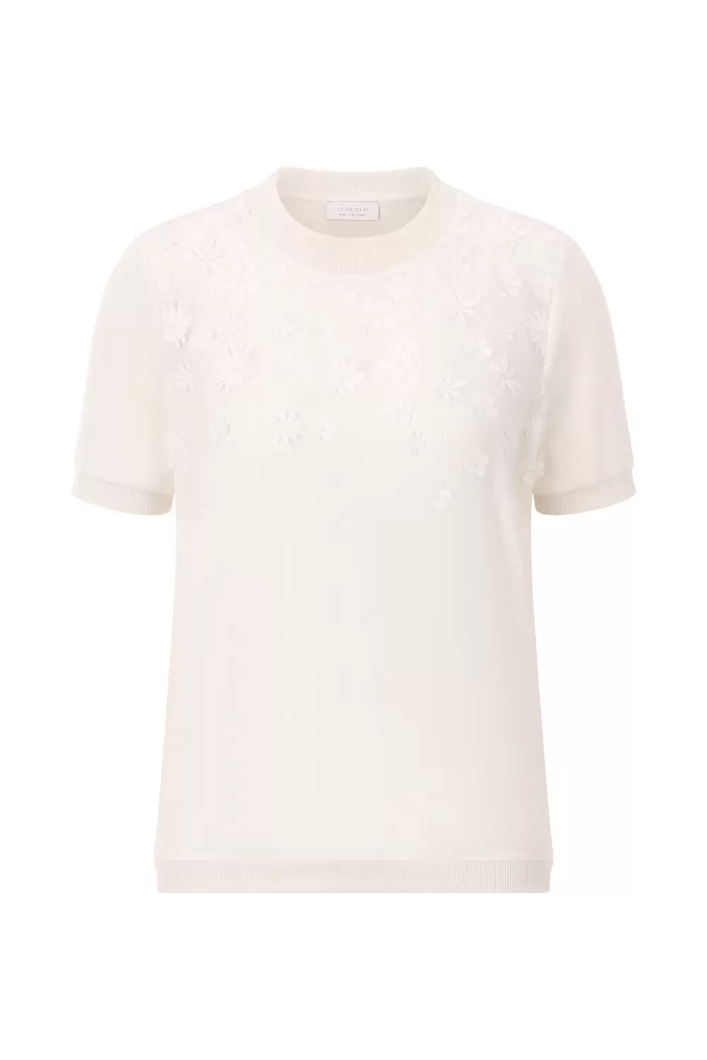 Knit Mat Mix T- Shirt with flower application