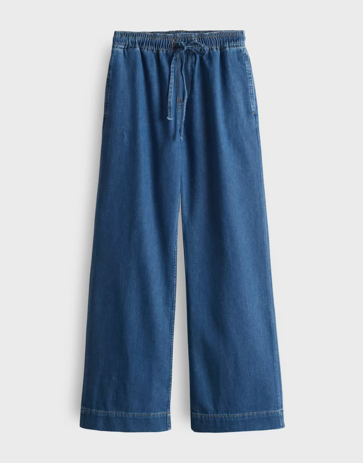 Die Jogpants kombiniert das Aussehen von Denim mit der weich fließenden Qualität einer Stoffhose und wird mit dem Komfortbund zur perfekten Wahl für jeden Anlass.