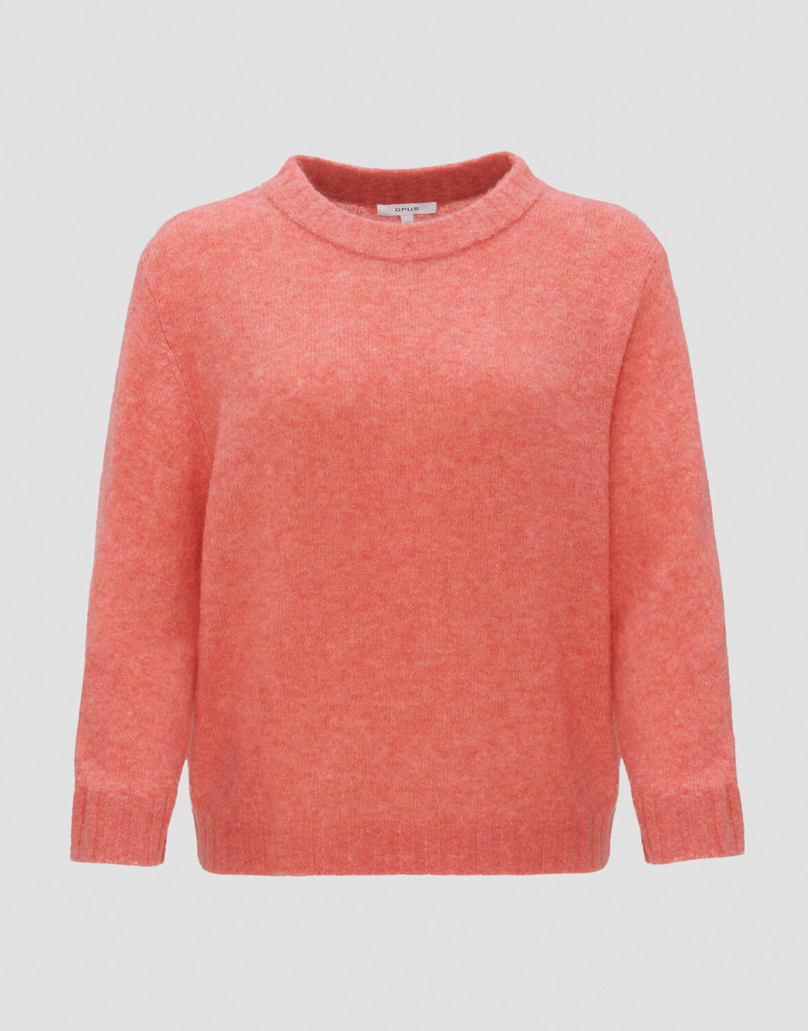 Der Strickpullover besticht mit einer besonders weichen Oberfläche. Der Saum am Rundhalsausschnitt, an den Ärmeln und am Bund ist durch eine elastische Rippe abgesetzt.