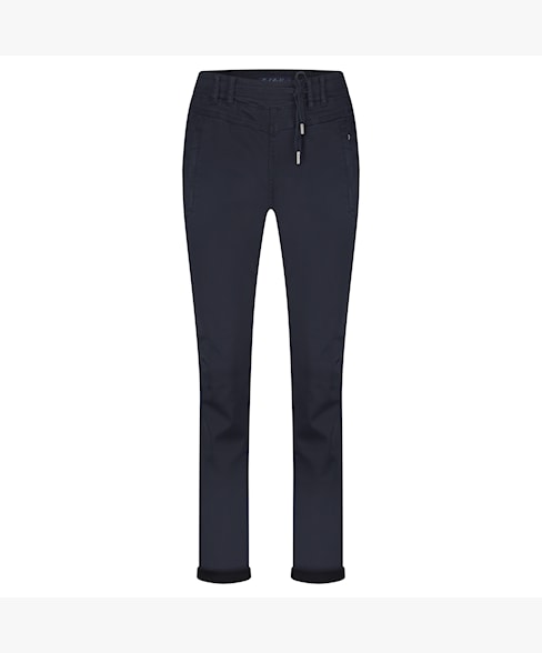 Besonders praktisch ist der elastische Dehnbund mit Tunnelzug, der sich optimal anpasst und für zusätzlichen Komfort sorgt – auch dann, wenn es etwas entspannter sitzen darf. Trotz des Schlupfhosen-Charakters wirkt die Tessy dank ihres klassischen Five-Pocket-Styles wie eine „echte“ Hose. Die relaxed Passform verleiht ihr eine sportive Note, während die edle Farbe Almond vielseitige Styling-Möglichkeiten eröffnet.