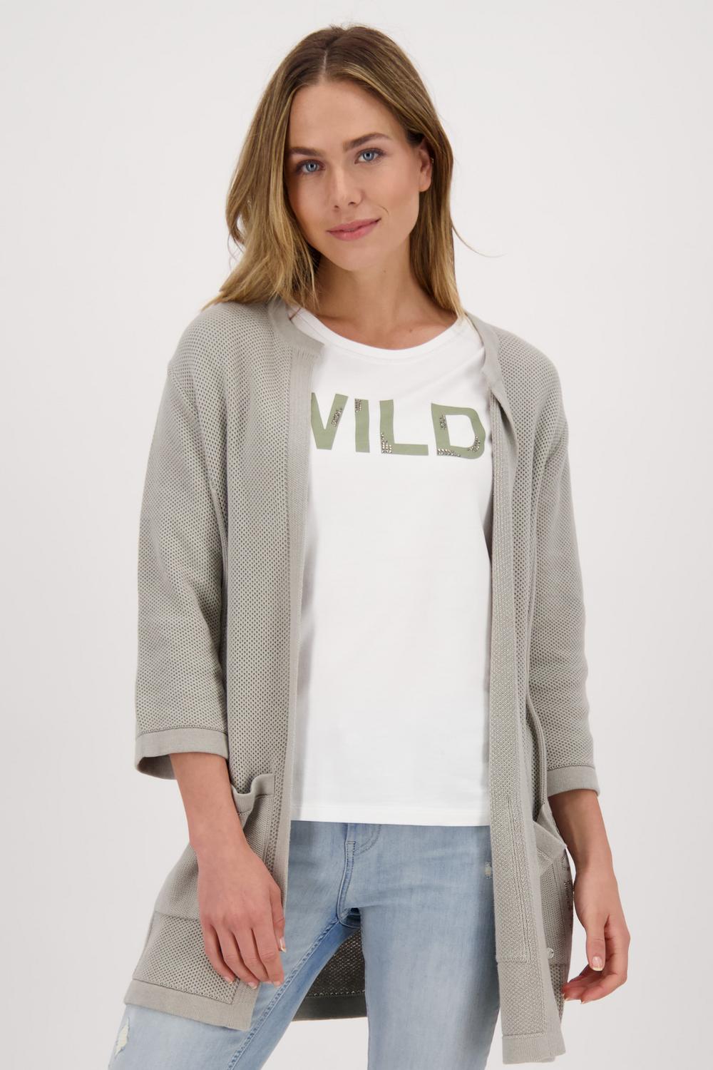 Ohne Verschluss lässt sich diese Longstrickjacke Damen von monari problemlos überziehen und ganz lässig offen tragen. Mit maximalen Komfort dank der Herstellung aus reiner Baumwolle sorgt die Strickjacke Damen lang für unverwechselbare Trageeigenschaften. Zum Highlight avanciert die lange Strickjacke dank des Strickmuster glatt rechts und der Glitzerschrift an den Seiten. Die Regular Fit Passform wird von einem Rundhalsausschnitt ergänzt. Das Gewebe mit Wabenmuster verleiht zeigt einen zeitlosen Stil. Aufgesetzte Taschen auf der Vorderseite runden den Look gekonnt ab. Die Longstrickjacke lässt sich super über einem lässigen T Shirt tragen. Immer eine gute Idee für Ihr Casual Outfit.
