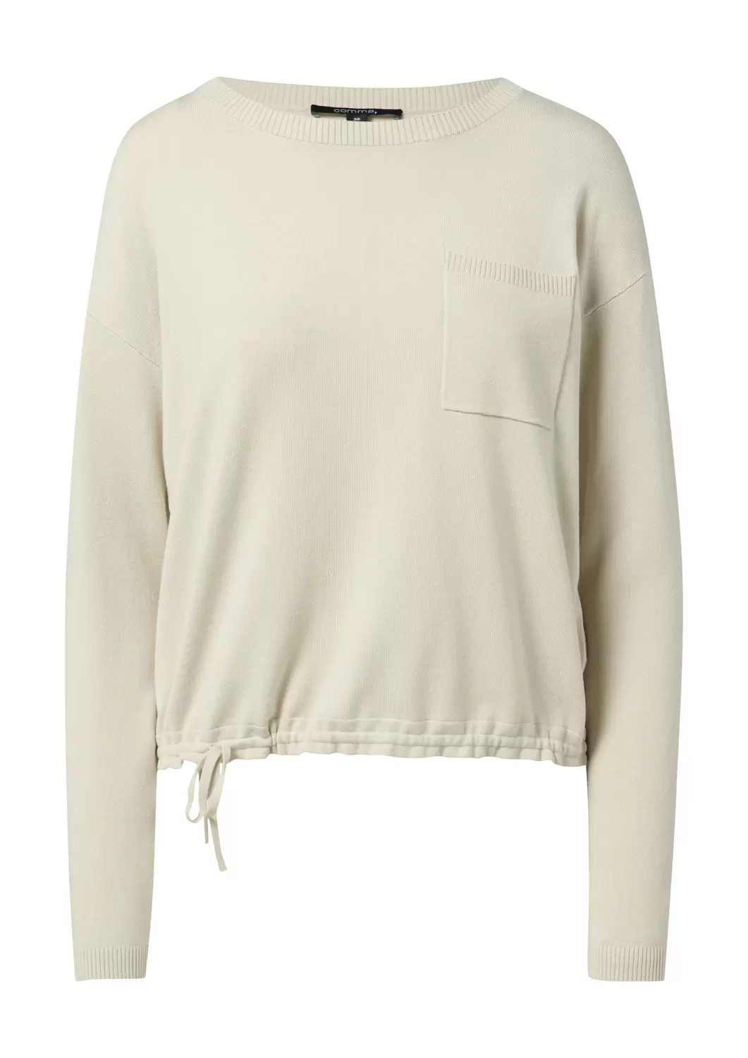 Boxy Feinstrickpullover mit raffiniertem Twist: Die Durchzugkordel verleiht dem weichen Viskosemix-Pullover eine individuelle Note. Überschnittene Schultern und Rippbündchen sorgen für lässigen Komfort, während der Rundhalsausschnitt mit Rippblende einen cleanen Look kreiert. Die aufgesetzte Tasche fügt dem elastischen Strick praktische Funktionalität hinzu. Stylen Sie dieses vielseitige Piece casual oder elegant – ein Must-have für jede Garderobe.