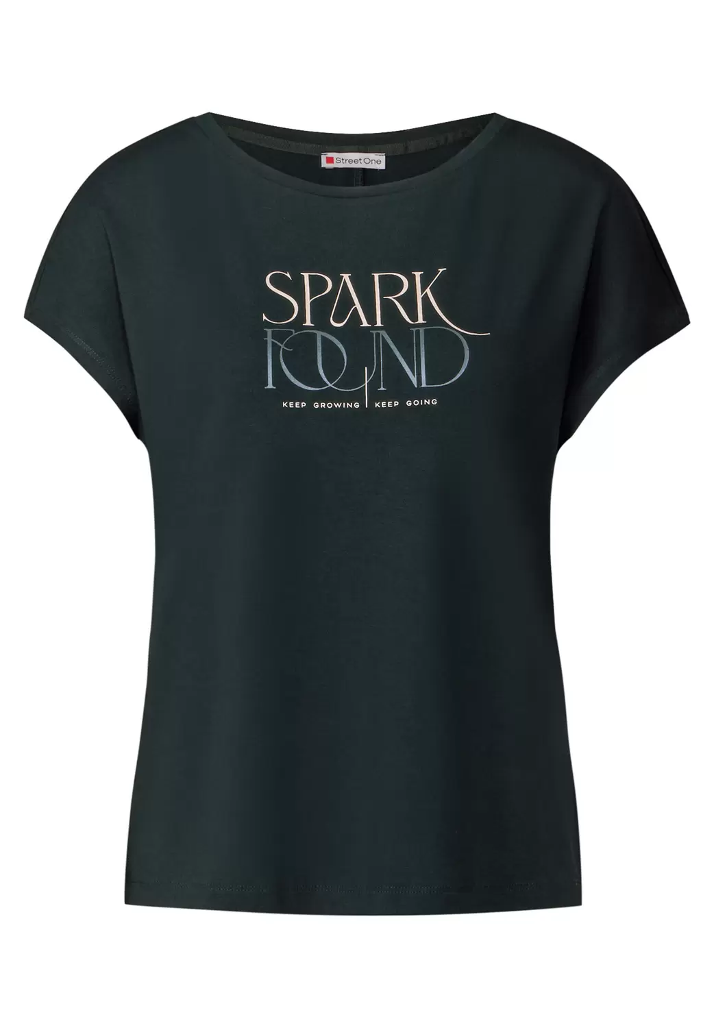 Dieses T-Shirt von Street One setzt mit seinem Wording-Print modische Akzente. Der Rundhalsausschnitt und die lässigen dropped shoulders unterstreichen den entspannten Look, während der Viskosemix mit Stretchanteil hohen Tragekomfort garantiert. Damenshirt Rundhalsausschnitt Dropped Shoulder Wording Print Viskosemix mit Stretchanteil Material: 95% Viskose, 5% Elasthan