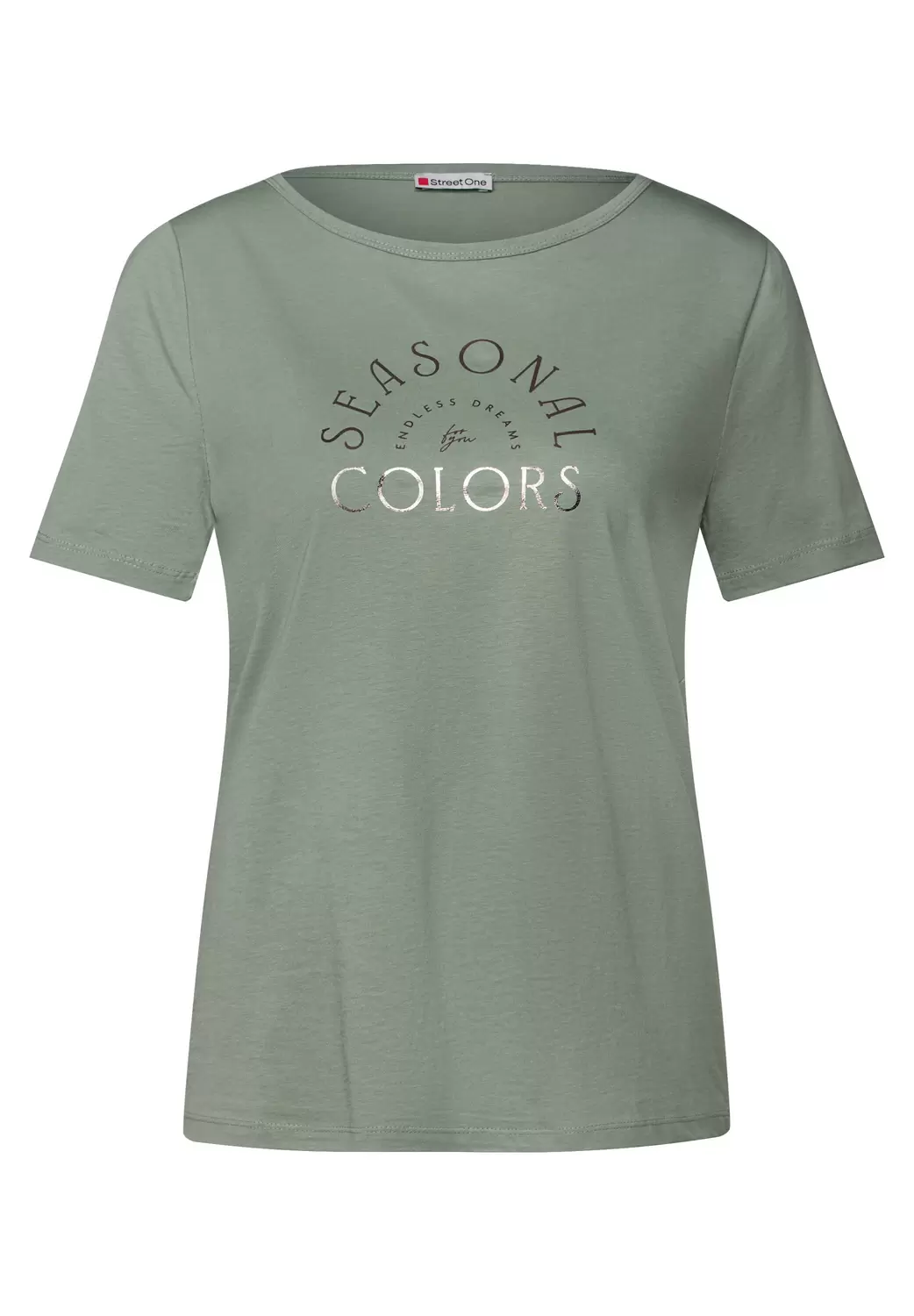 Dieses Shirt von Street One für Damen bringt mit schimmerndem Wording-Artwork einen Hauch Glamour in deinen Look. Der Rundhalsausschnitt und die kurzen Ärmel sorgen für eine lässige Passform. Der softe Baumwoll-Modalmix fühlt sich angenehm auf der Haut an. Shirt Rundhalsausschnitt Kurzarm Schimmerndes Wording Artwork Softer Baumwoll-Modalmix Material: 50% Baumwolle, 50% Modal