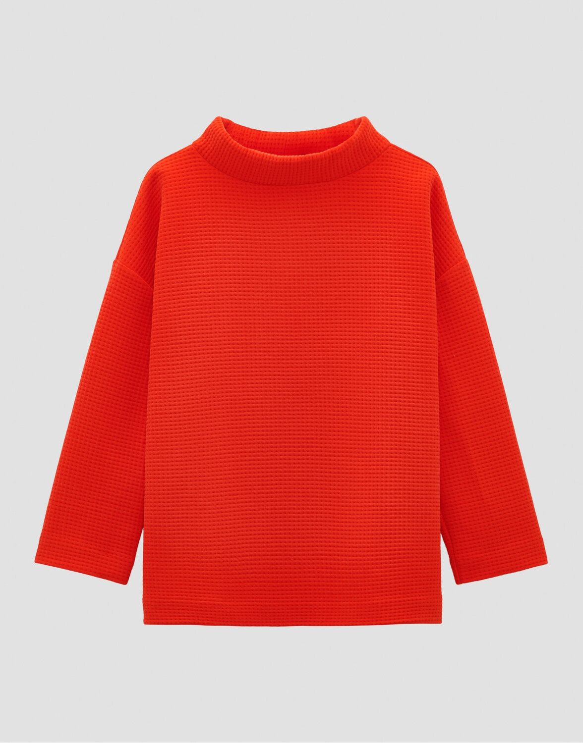 Der Sweater erzeugt durch die dreidimensionale Punkte-Struktur eine spannende Optik.