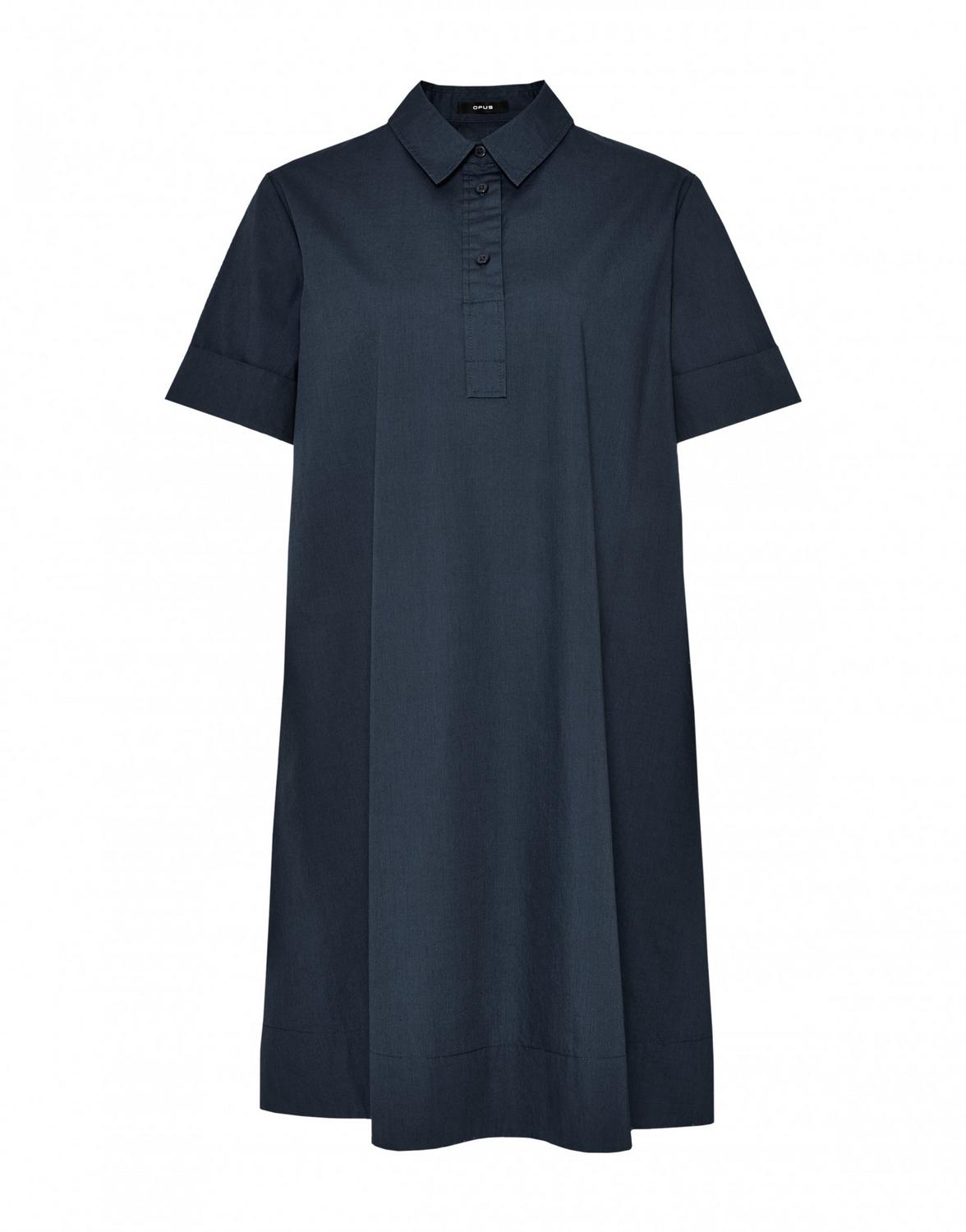 Das Hemdblusenkleid aus einer hochwertigen Baumwoll-Popelin-Qualität überzeugt mit klassischen Blusenelementen, wie dem Reverskragen und der kurzen Knopfleiste. Die leicht ausgestellte Silhouette schmeichelt der Figur und gibt einen angenehmen Tragekomfort für warme Sommertage.